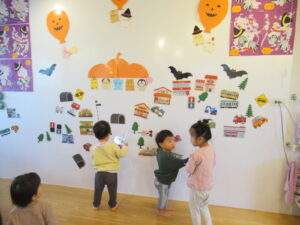 「消防車はここ!」「トンネルはここ!」とみんなで考えながら少しずつオリジナルの街が完成してきました!!