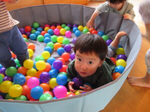 ボールプールに入って見たり♡泳いだりしながらボールプールを楽しんでいます♬