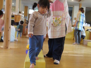 滑り台を滑ったり、ステップストーンで落ちないようにそーっと歩いたり…