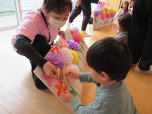 お花畑の中には、小人に変身したひよこ組とりす組のお友達がかくれんぼ(*^^*)