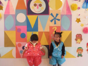 みんなで作った帽子を被って、部屋の中にたくさんある