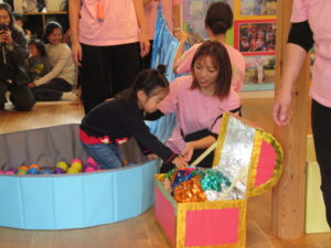 カラーボールの中に紛れている金貨を探して、次のひとにバトンタッチ!!