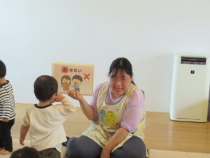 まずは先生が避難訓練の注意をお話ししてくれましたよ!